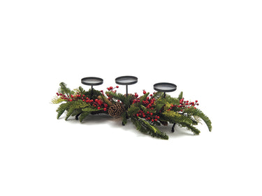 Elegante candeliere triplo che cattura l'essenza del Natale tradizionale. Realizzato con dimensioni generose (86x30 cm), questo pezzo combina tre supporti per candele con una composizione decorativa ricca di bacche rosse e pigne naturali su base verde. Perfetto per creare un'atmosfera festiva sofisticata sulla tavola o su una consolle, il design bilanciato e i materiali naturali lo rendono un elemento di décor versatile che si adatta a qualsiasi stile natalizio, dal classico al contemporaneo.
