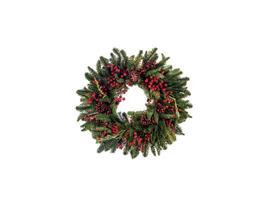 CORONA MAGIC CHRISTMAS CON BACCHE E PIGNE VERDE E ROSSO D66