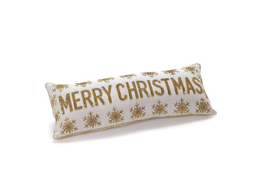CUSCINO MERRY CHRISTMAS CON PERLINE NATURAL ORO 36X90